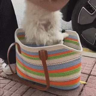 - Materiales artesanales de calidad y ecológicos: Meticulosamente elaborado a mano con algodón de origen responsable, este transportador tiene el tamaño perfecto para perros y gatos pequeños, y ofrece una forma ecológica de llevar a tu amigo peludo a pasar un día relajante junto al océano.