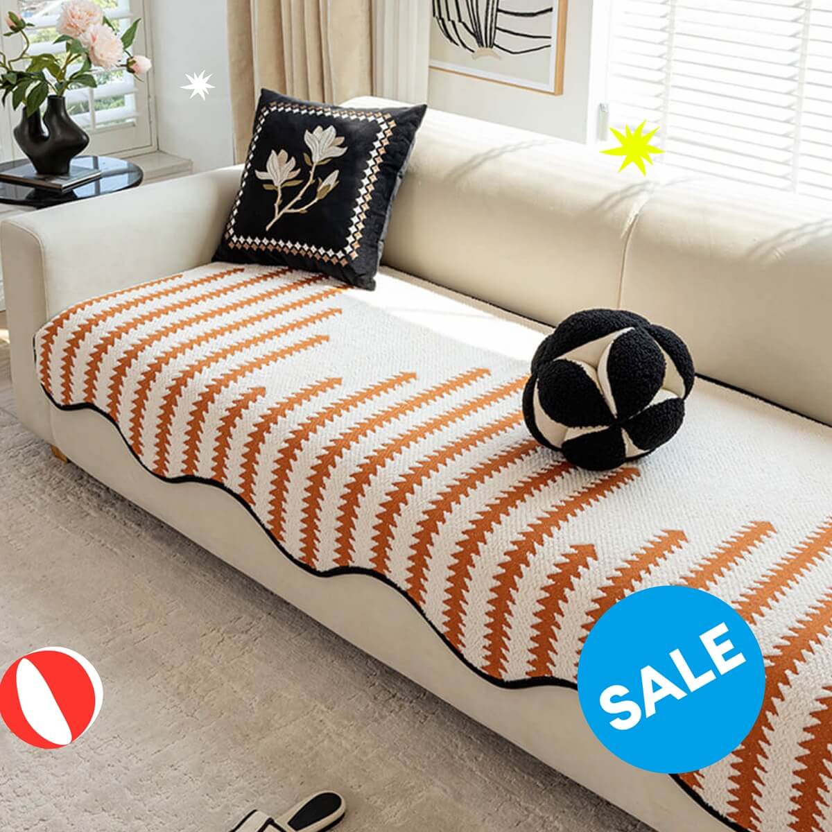 Modern Chevron Stripes Chenille Couch Cover with Wavy Edges