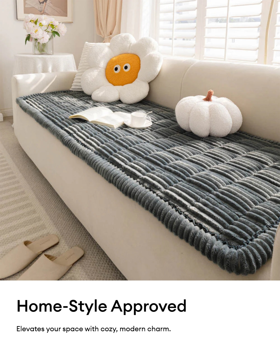 Elevate your sofa's softness factor for your pets and yourself with this textured fleece cover.