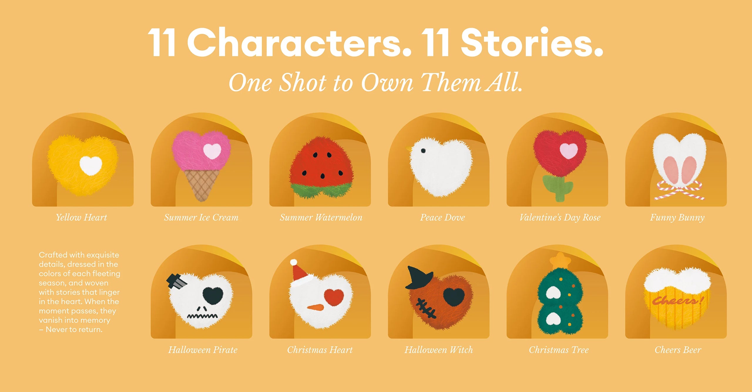 Each character is crafted with unique details and seasonal designs — a true keepsake.