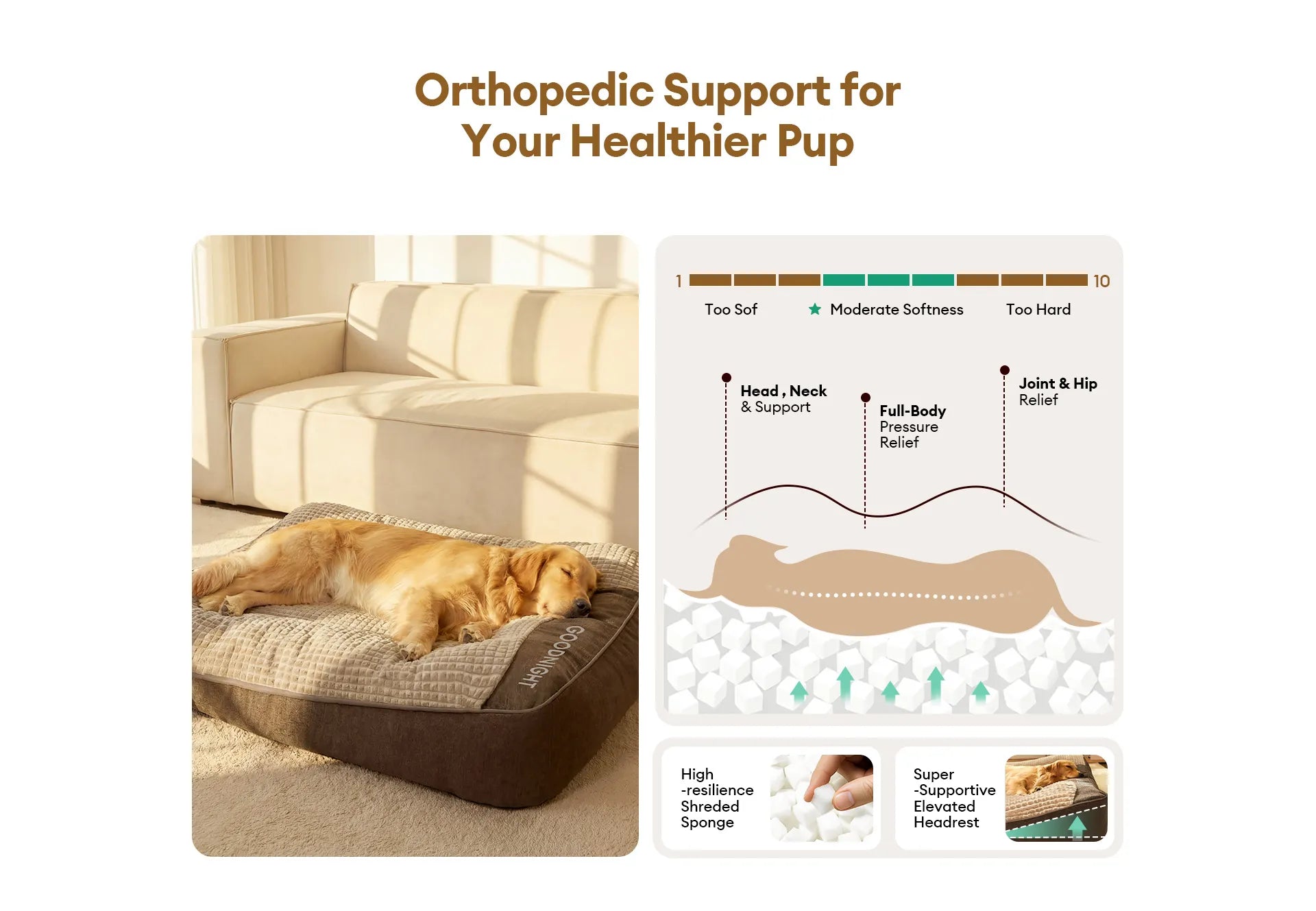 - Orthopedic Support for Joint Health: Filled with high-resilience shreded sponge padding, it contours to your dog’s body, easing pressure on joints, hips, and spine, making it an ideal choice for senior and large dogs.