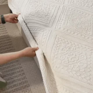 • Intricate Carved Jacquard Plush: Crafted with premium textured plush and woven in a delicate raised pattern, this cover delivers a soft, dimensional feel that elevates your sofa into a statement piece. The intricate design adds an artisanal touch—rich in texture, never flat.