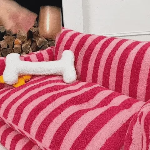 Trendy Striped Faux Lambswool Double Layer Cat Couch Sofa Bed