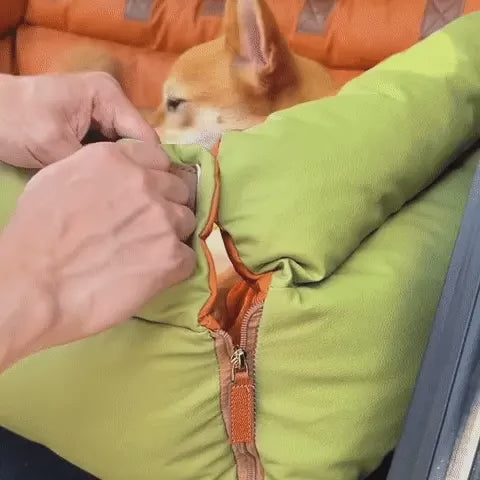 - Comfortable and Relaxing: We've designed this with your pet's comfort in mind. The cozy bed is cushioned around offering a spot for your furry friend to relax and nap. The front opening can be unzipped to create a sleeping space for unwinding after a full day of indoor and outdoor activities.